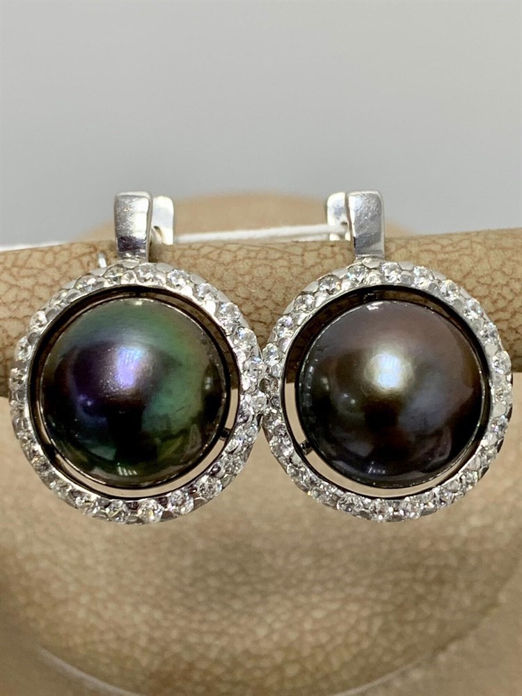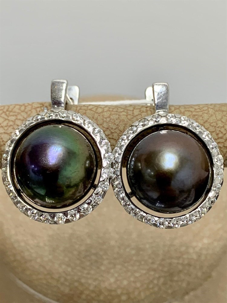 *Серьги Черный Жемчуг д.8,5*9мм д.7*7,5мм арт. 2.0336.0.e-680 Вес 11,16 г