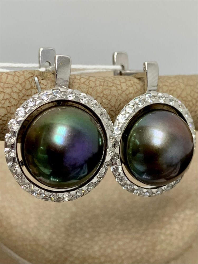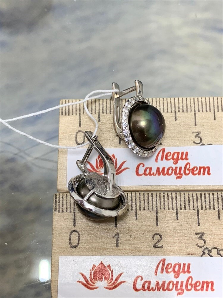 *Серьги Черный Жемчуг д.8,5*9мм д.7*7,5мм арт. 2.0336.0.e-146 Вес 11,25 г