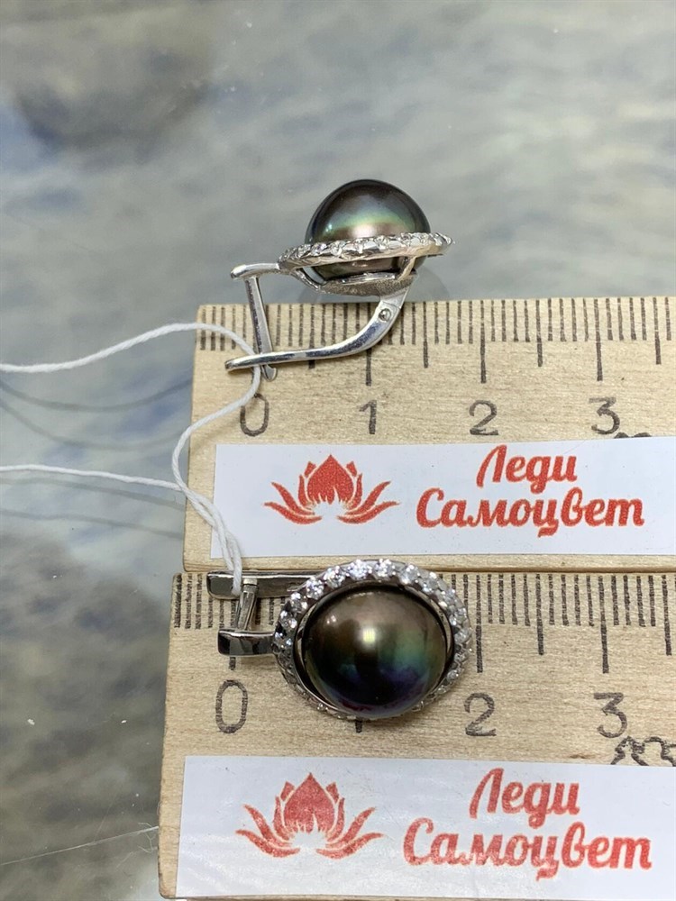 *Серьги Черный Жемчуг д.11-11,5мм арт. 2.0812.0.b-831 Вес 6,68 г