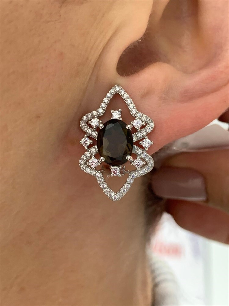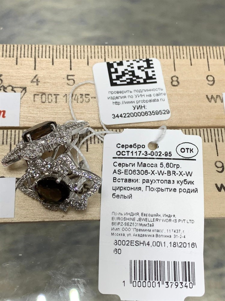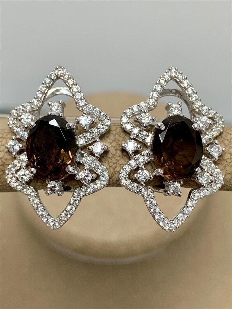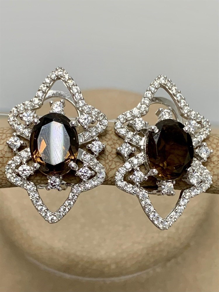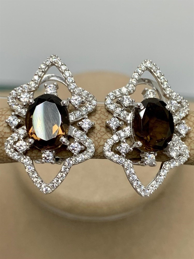 *Серьги Дымчатый Кварц Раухтопаз арт. AS-E06306-X-W-Gl-X-W-529 вес 5,6 г