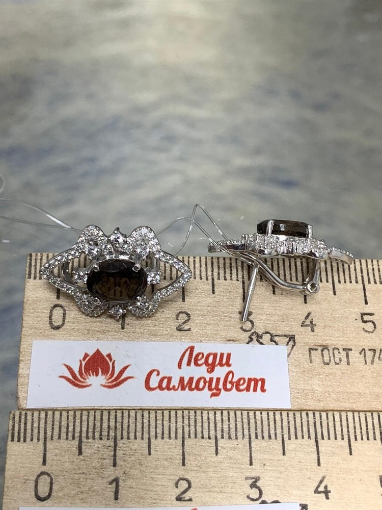*Серьги Дымчатый Кварц арт. 02-2335/00РТ-00-062 вес 8,68 г