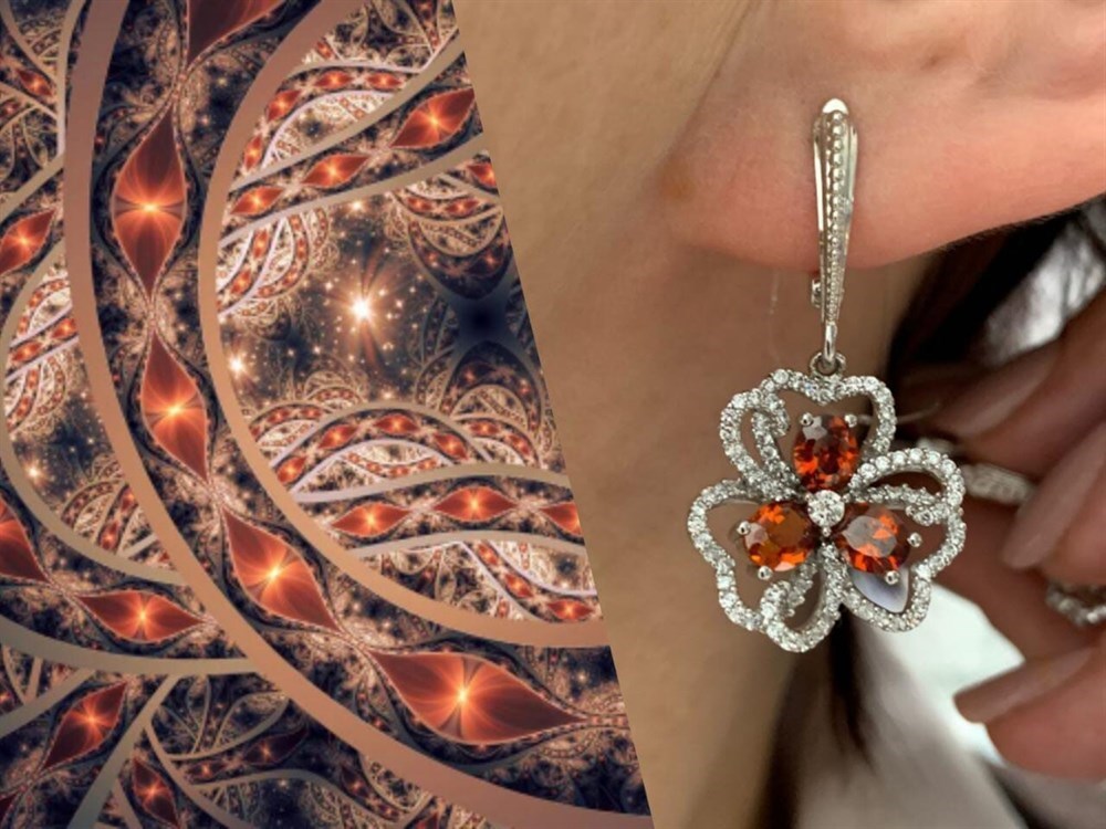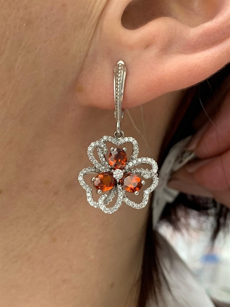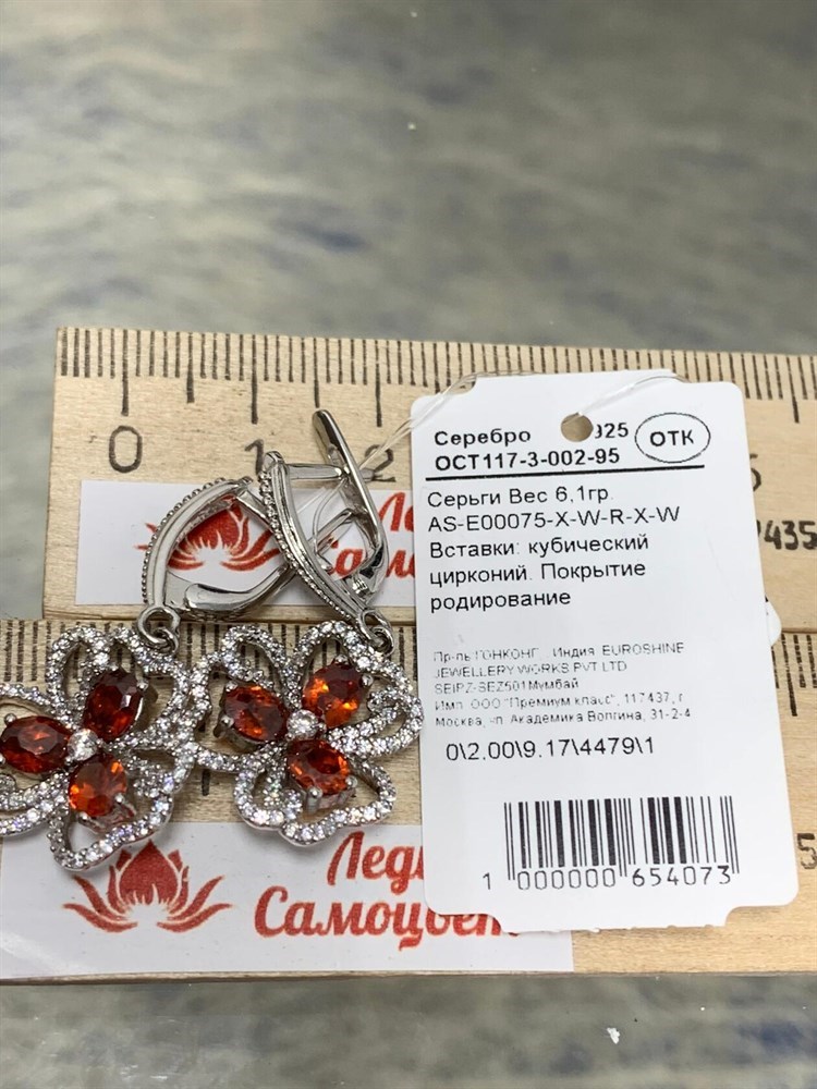 *Серьги Гранат арт. AS-E06341-X-W-R-X-W-543 вес 9,1 г