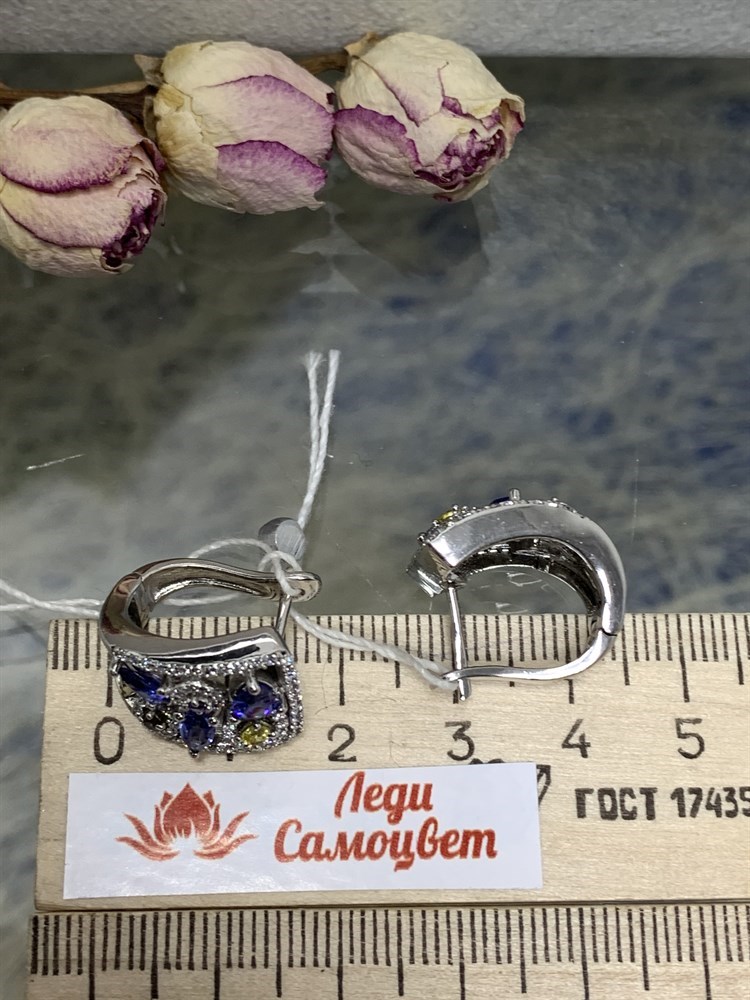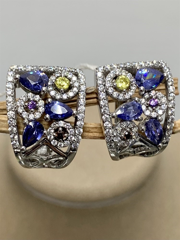 *Серьги иск Сапфир Микс арт. AS-E01120-X-W-SAP-BL-W-845 вес 9,2 г