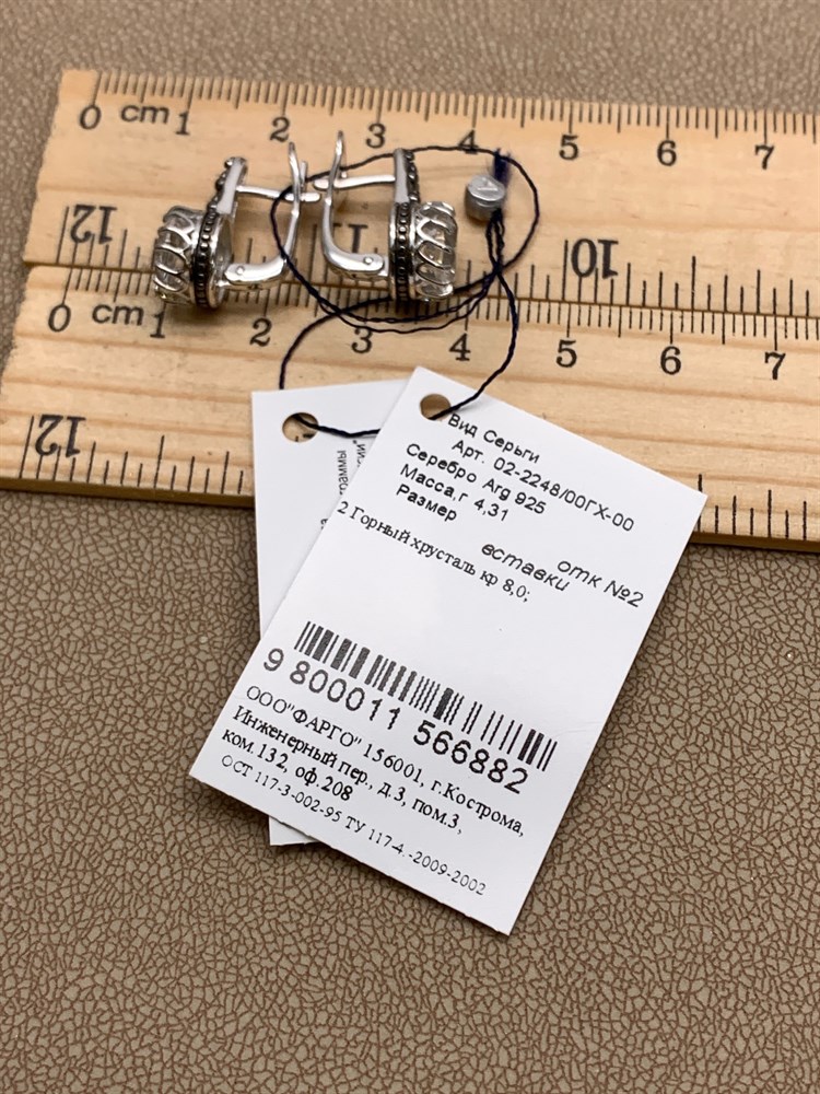 *Серьги Горный Хрусталь арт. 02-2248/00ГХ-00-882 вес 4,31 г