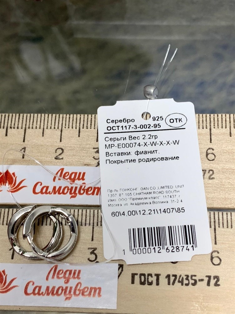 *Серьги Конго Фианит Микро Вставки арт. MP-E00074-X-W-X-X-W-836 вес 2,2 г