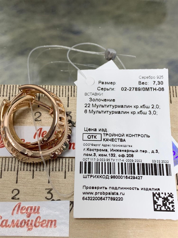 *Серьги Конго Турмалин Микс арт. 02-2789/0МТН-06-220 вес 7,3 г