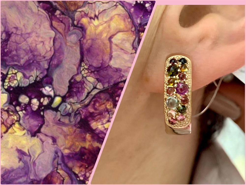 *Серьги Орхидея Микс Турмалин Аметист арт. С1721Ю/Ag-607/4/14ПОЗ-461 вес 5,89 г