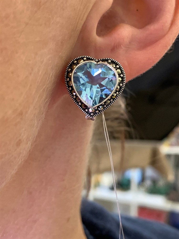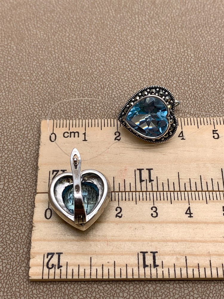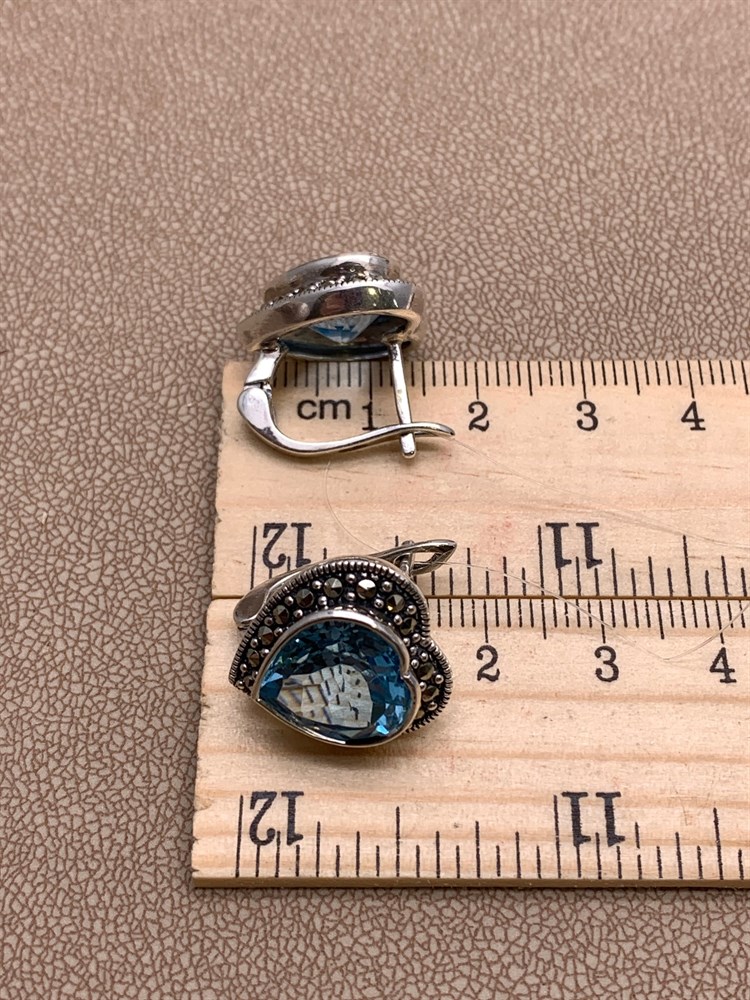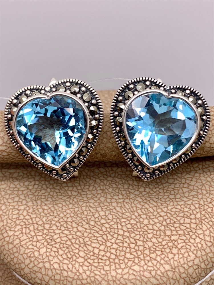 *Серьги Сердца Марказит Голубой Топаз арт. HE612-913 вес 10,59 г