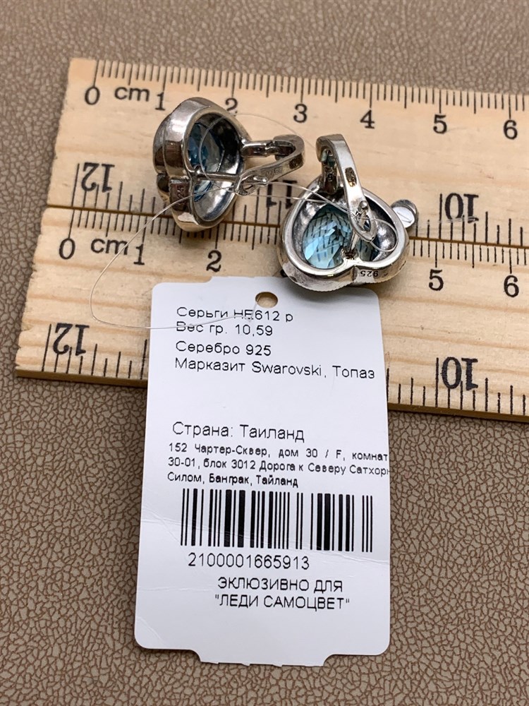 *Серьги Микс Марказит Голубой Топаз арт. HE1414-942 вес 8.4 г