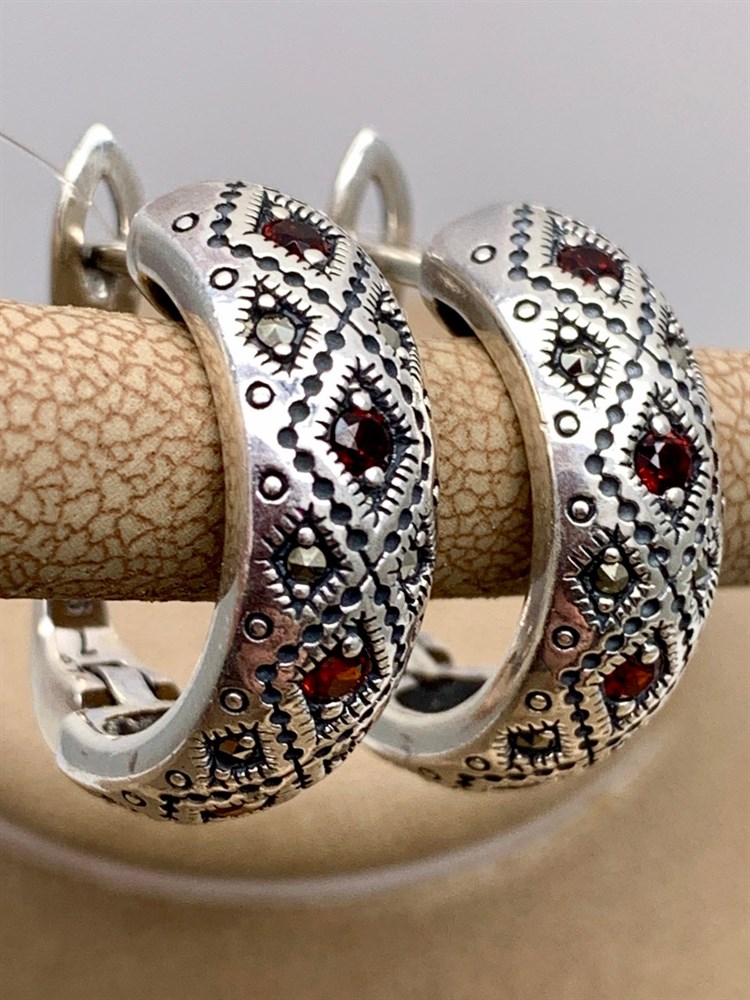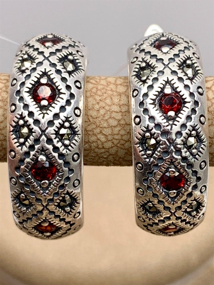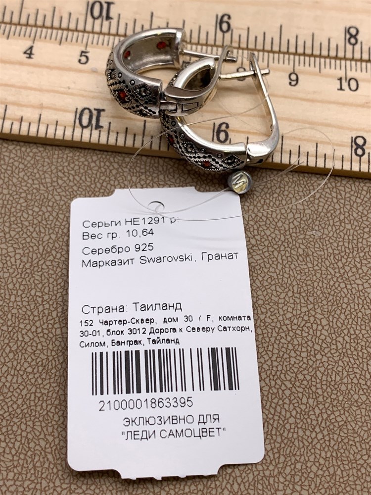 *Серьги Микс Марказит Гранат Пироп арт. HE1291-395 вес 10,64 г