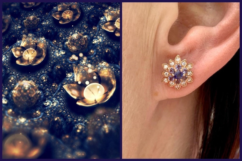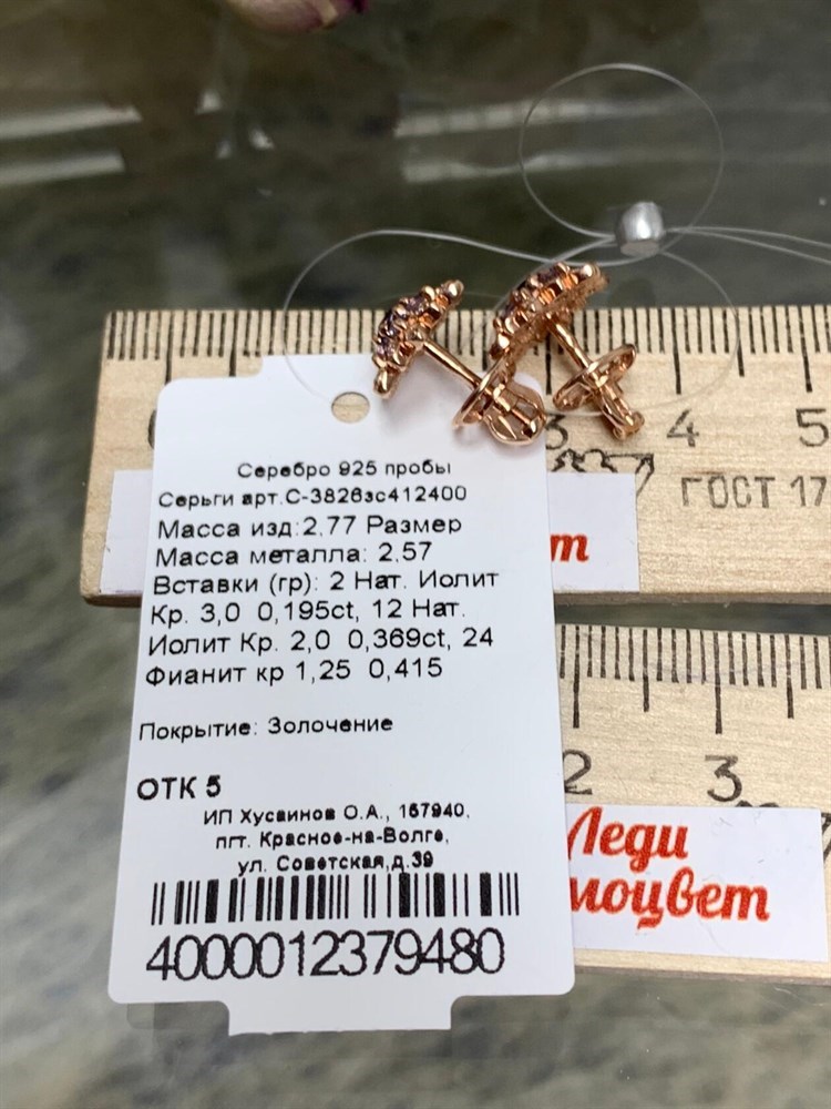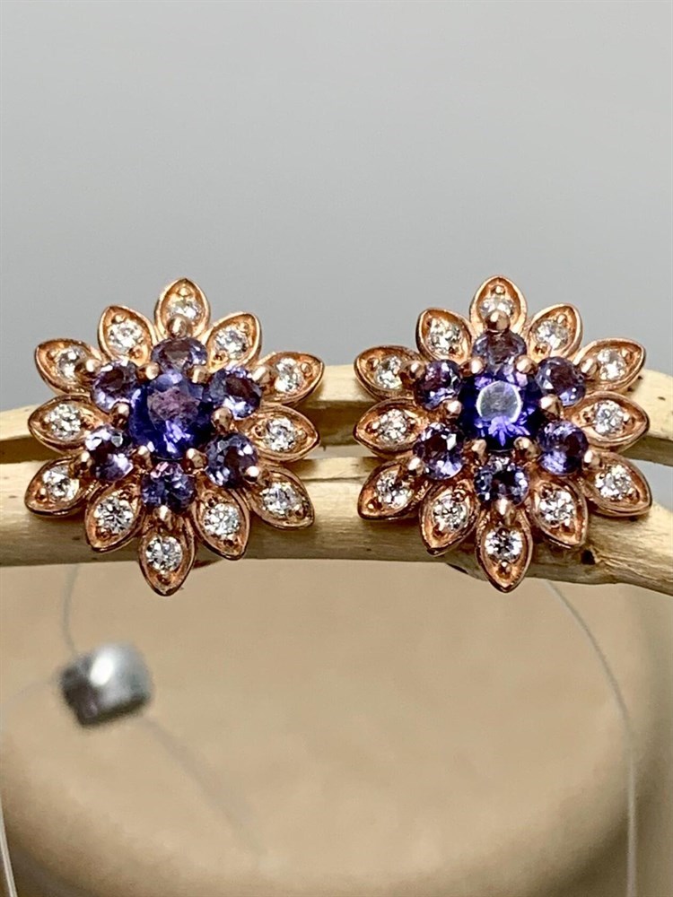 *Серьги Фиалки Иолит Африка арт. С1620Ю/Ag-612ГТ/13-318 вес 4,06 г