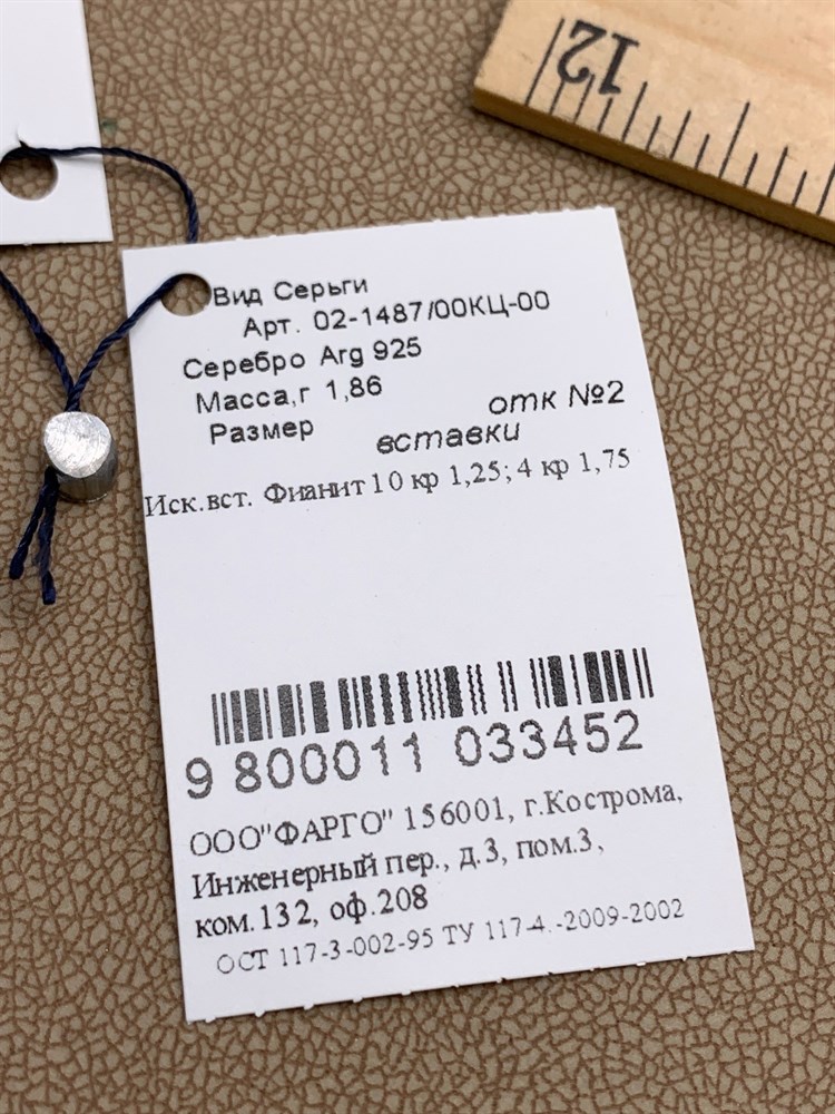 *Серьги Пусеты Звезды Белый Фианит арт. 02-1487/00КЦ-00-452 вес 1,86 г