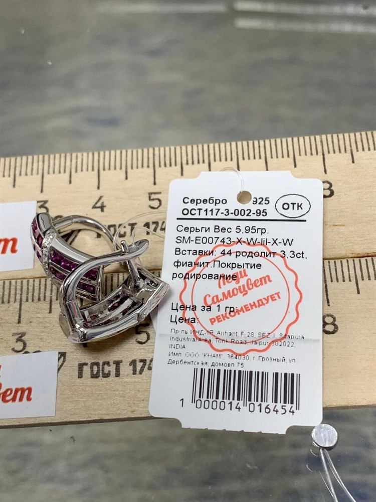 *Серьги Родолит арт. SM-E00745-X-WB-lil-X-X-104 (вес 8,14 г)