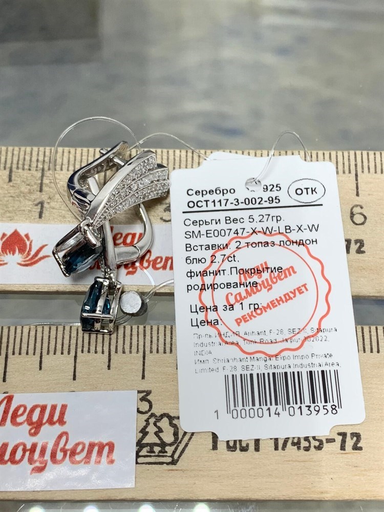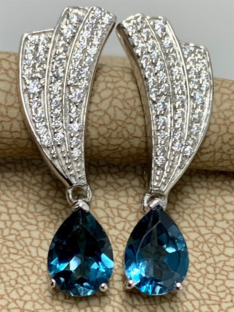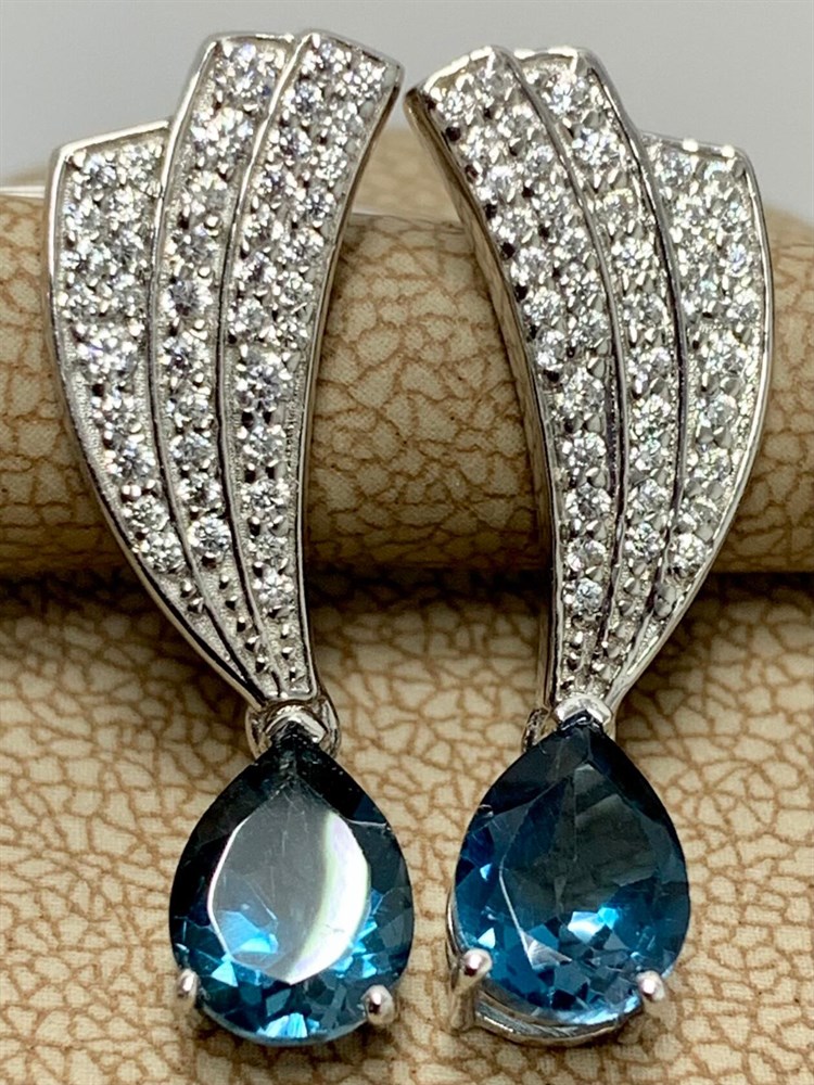 *Серьги Голубой Топаз арт. SM-E00749-X-WB-SBT-X-B-888 (вес 4,35 г)