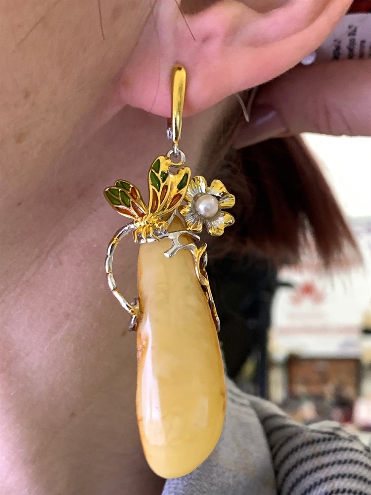 *Серьги Королевский Янтарь Жемчуг Эксклюзив арт. 721044п-405 Вес 11,97 г