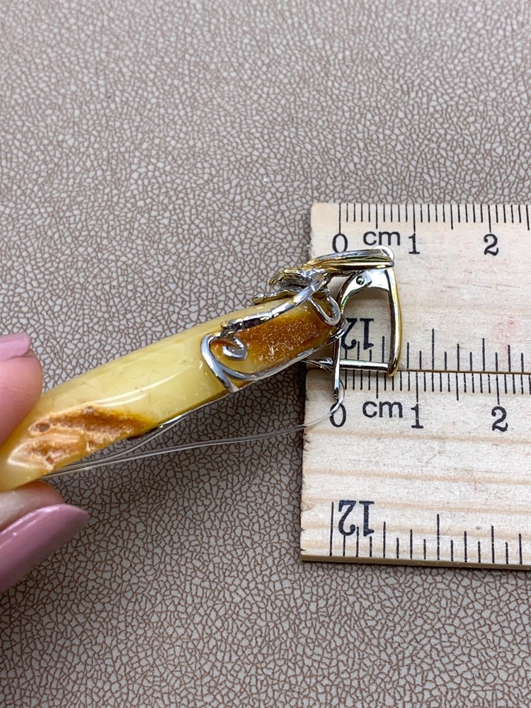 *Брошь Королевский Янтарь Жемчуг Эксклюзив арт. 725094п-24,59-032 Вес 24,59 г