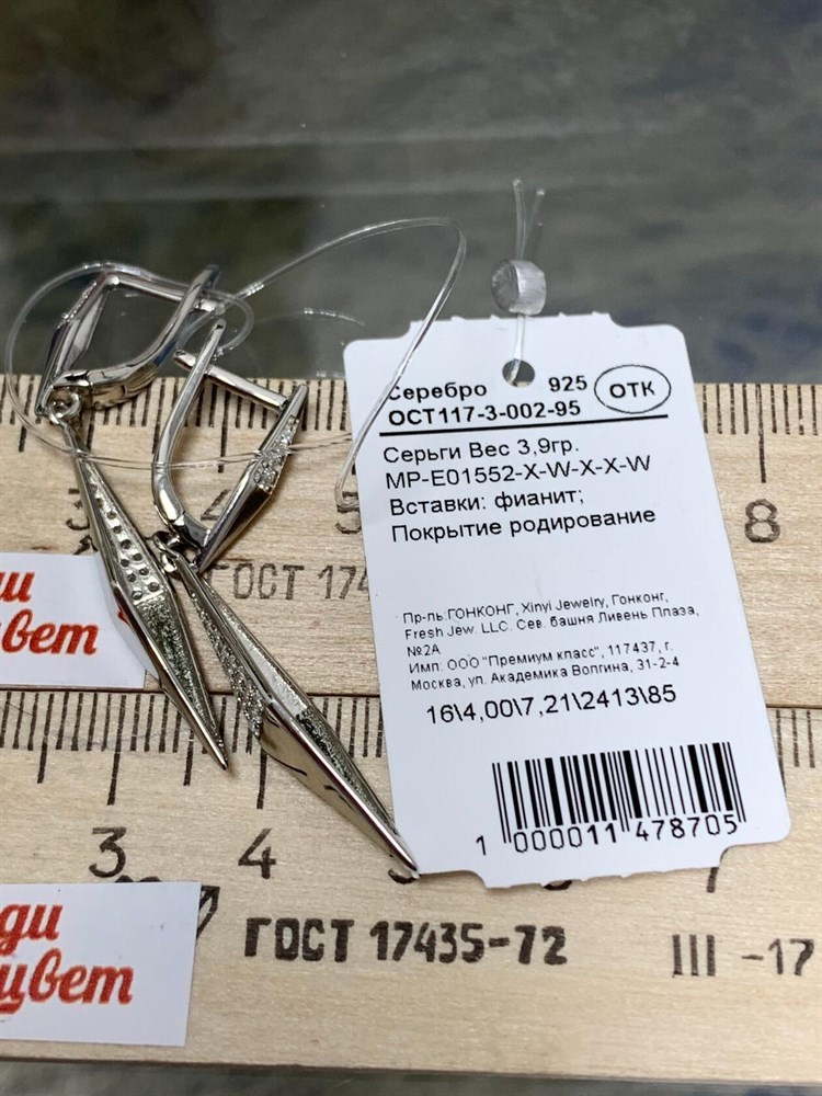*Серьги Белый Фианит Микро Вставки арт. CZ-E01788-X-W-X-X-W-568 вес 4,67 г