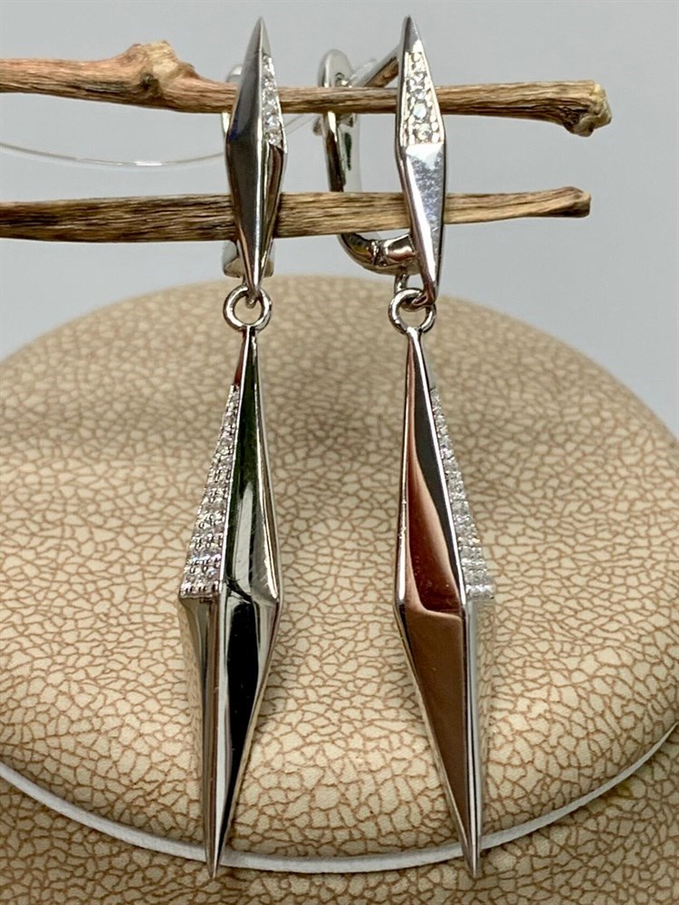 *Серьги Зубчики Белый Фианит арт. CZ-E00893-X-W-X-X-W-349 вес 5,9 г