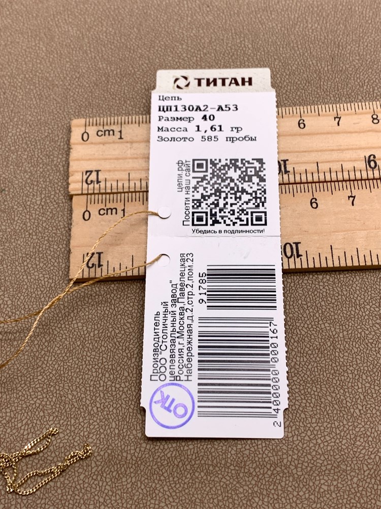 *Цепь "Панцирь" 40 см. цв Лимонное арт. ЦП130А2-А53-785 (Вес 1,61 г)