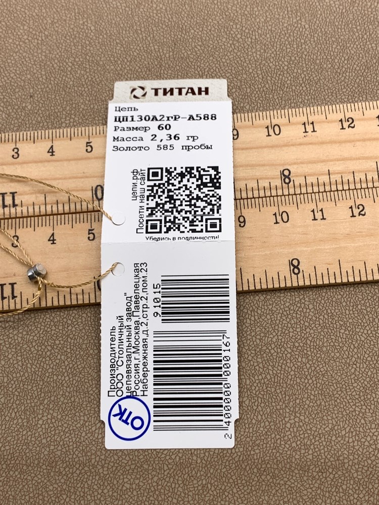 *Цепь 60 см. цв Белое "ПАНЦИРЬ" арт. ЦП130А2гР-А588-015 (Вес 2,36 г)