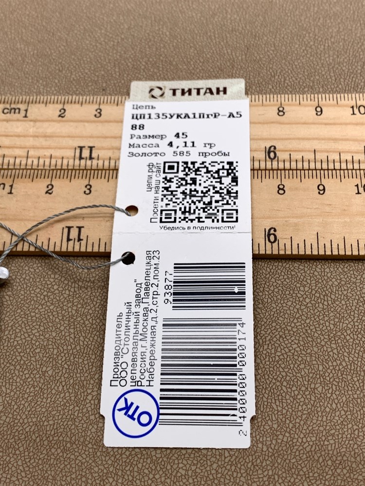 *Цепь 45 см. цв Белое арт. ЦП135УКА1ПгР-А588-877 (Вес 4,11 г)