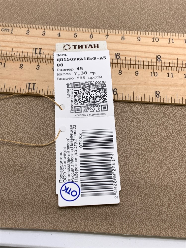 *Цепь р.45 цв Белое арт. ЦП150УКА1ПгР-А588-483 (Вес 7,38 г)