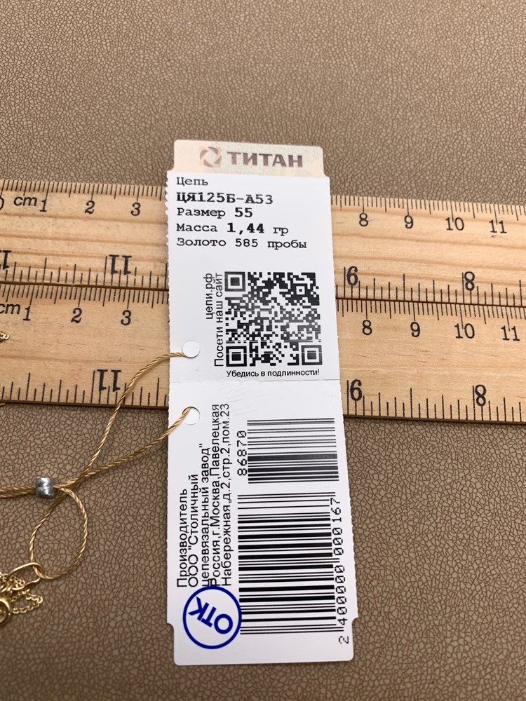 *Цепь 55 см. цв Лимонное "ЯКОРЬ" арт. ЦЯ125Б-А53-870 (Вес 1,44 г)