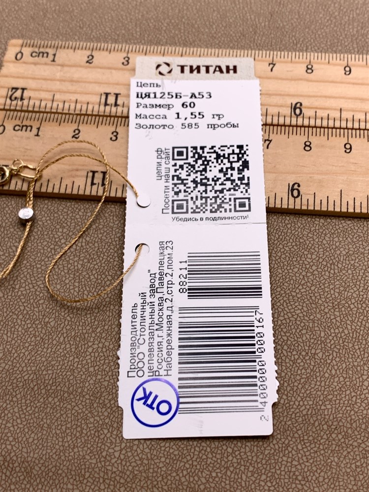 *Цепь 60 см. цв Лимонное "ЯКОРЬ" арт. ЦЯ125Б-А53-211 (Вес 1,55 г)