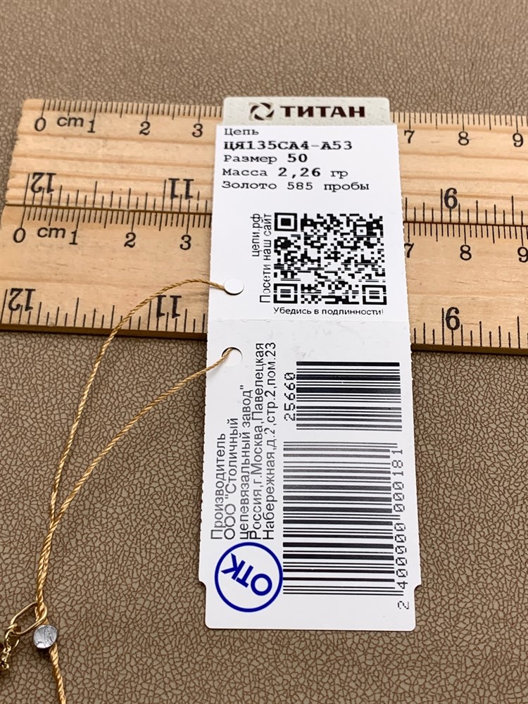 *Цепь "Якорь" 50 см. цв Лимонное арт. ЦЯ135СА4-А53-660 (Вес 2,26 г)