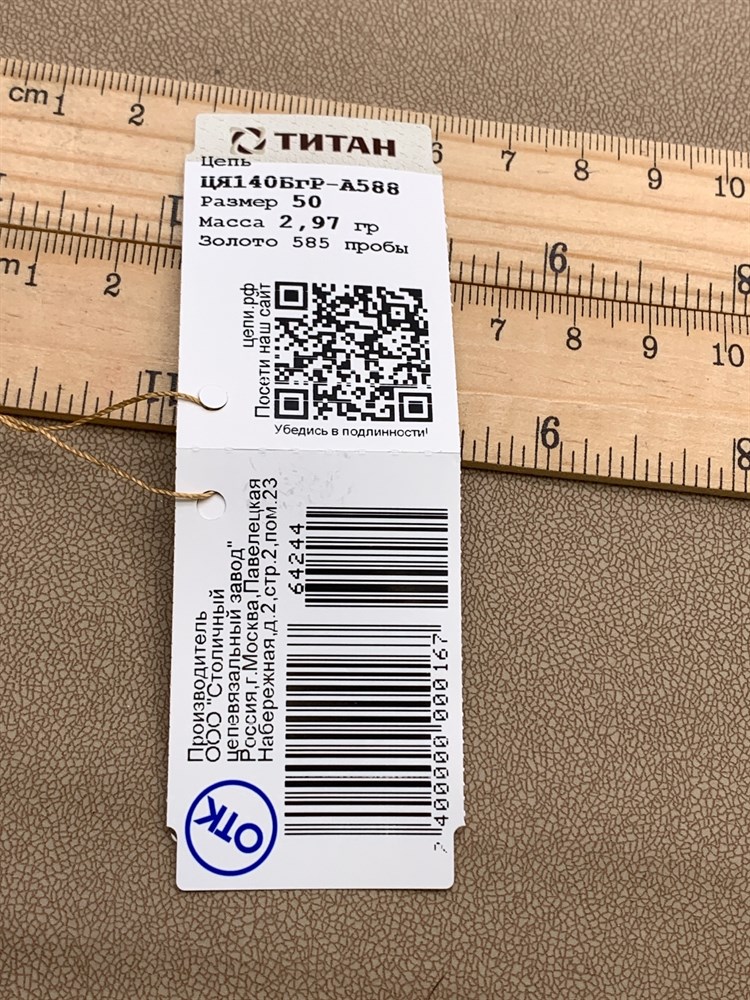 *Цепь 50 см. цв Белое "ЯКОРЬ" арт. ЦЯ140БгР-А588-244 (Вес 2,97 г)