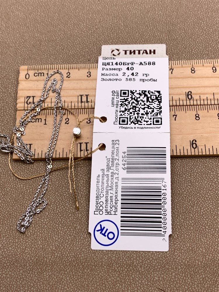 *Цепь 40 см. цв Белое "ЯКОРЬ" арт. ЦЯ140БгР-А588-254 (Вес 2,42 г)