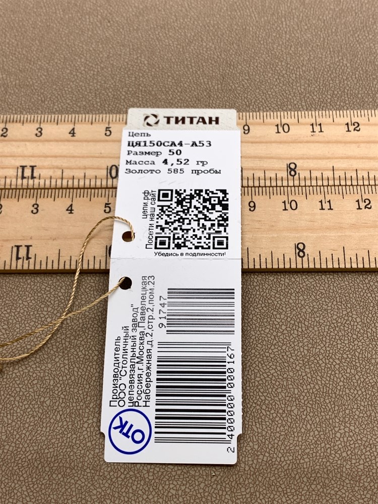 *Цепь 50 см. цв Лимонное "ЯКОРЬ" арт. ЦЯ150СА4-А53-747 (Вес 4,52 г)