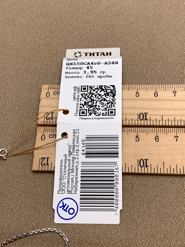 *Цепь р.45 цв Белое арт. ЦЯ150СА4гР-А588-165 (Вес 3,95 г)