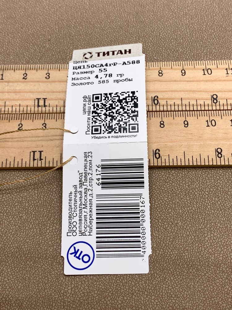 *Цепь р.55 цв Белое арт. ЦЯ150СА4гР-А588-176 (Вес 4,78 г)