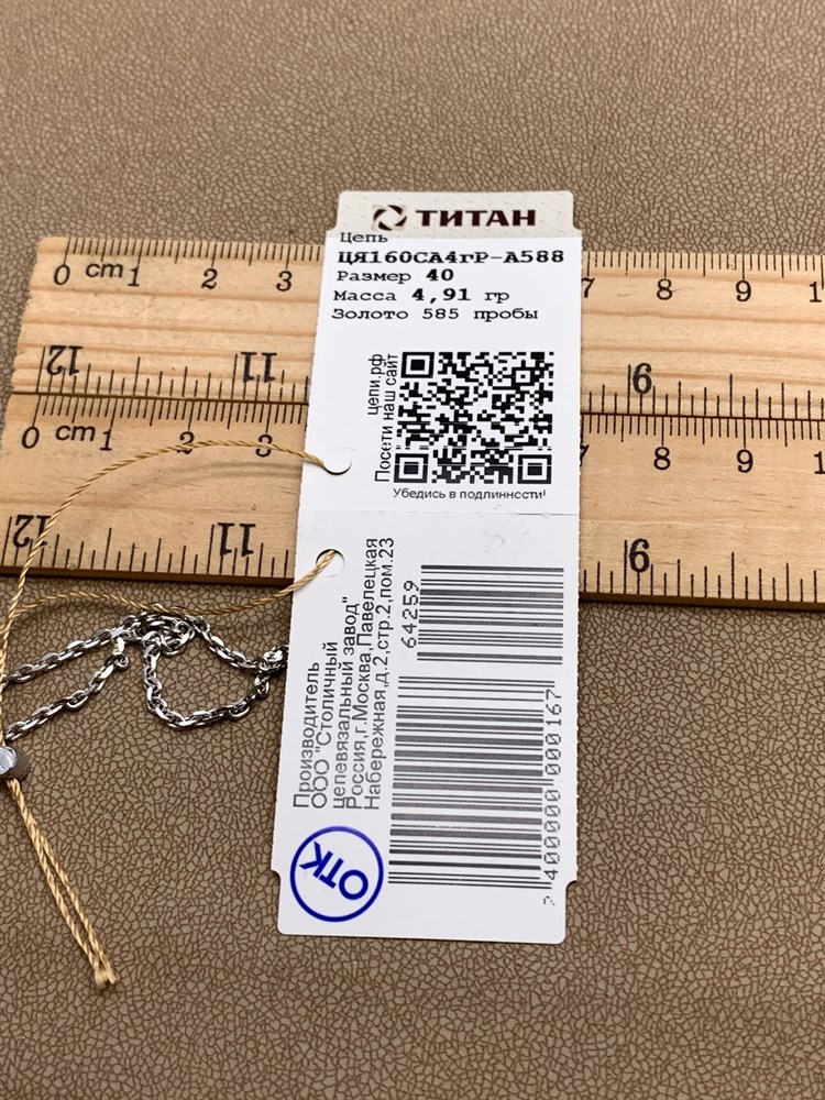 *Цепь р.40 Якорь цв Белое арт. ЦЯ160СА4гР-А588-259 Вес 4,91 г