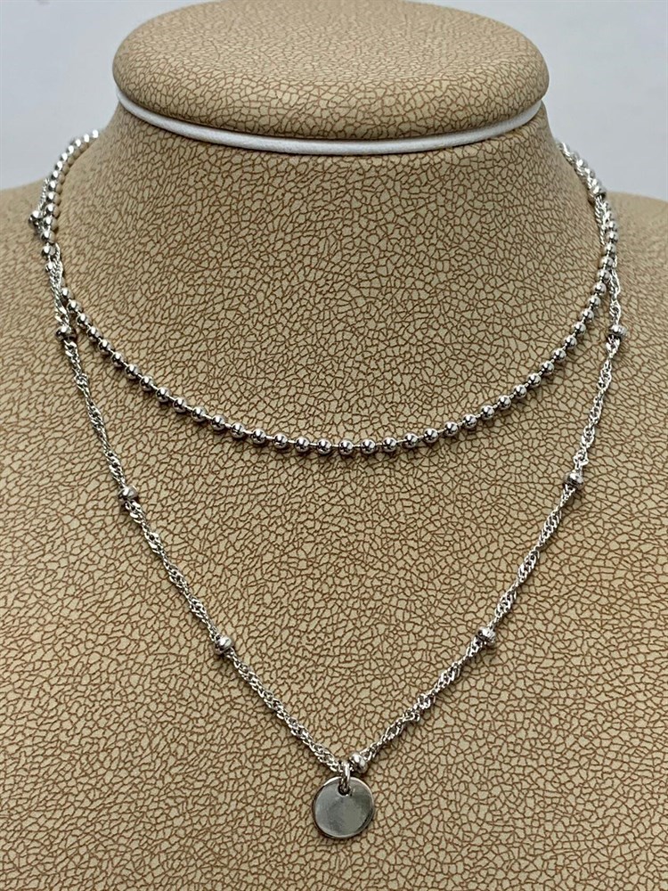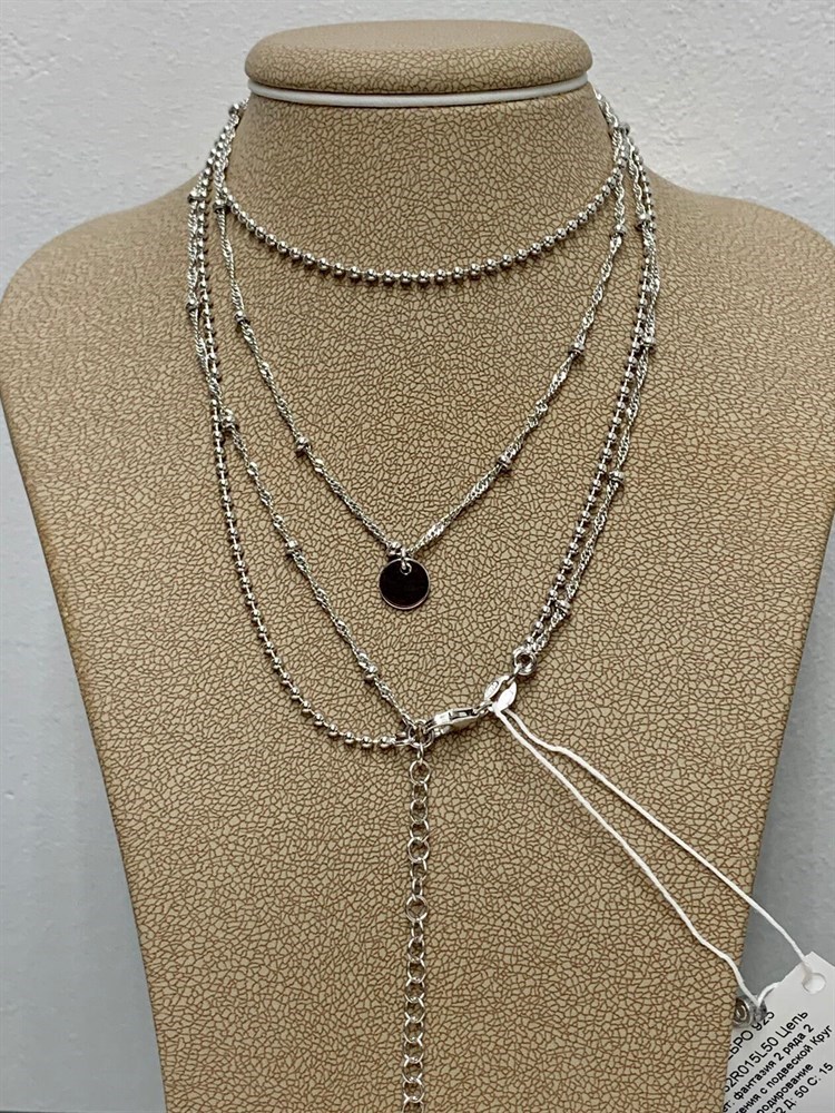 *Цепь р.40-45 Фантазия 2 ряда Перлина Сингапур с подвеской Круг арт. 032282R015L40-041 Вес 7,1 г