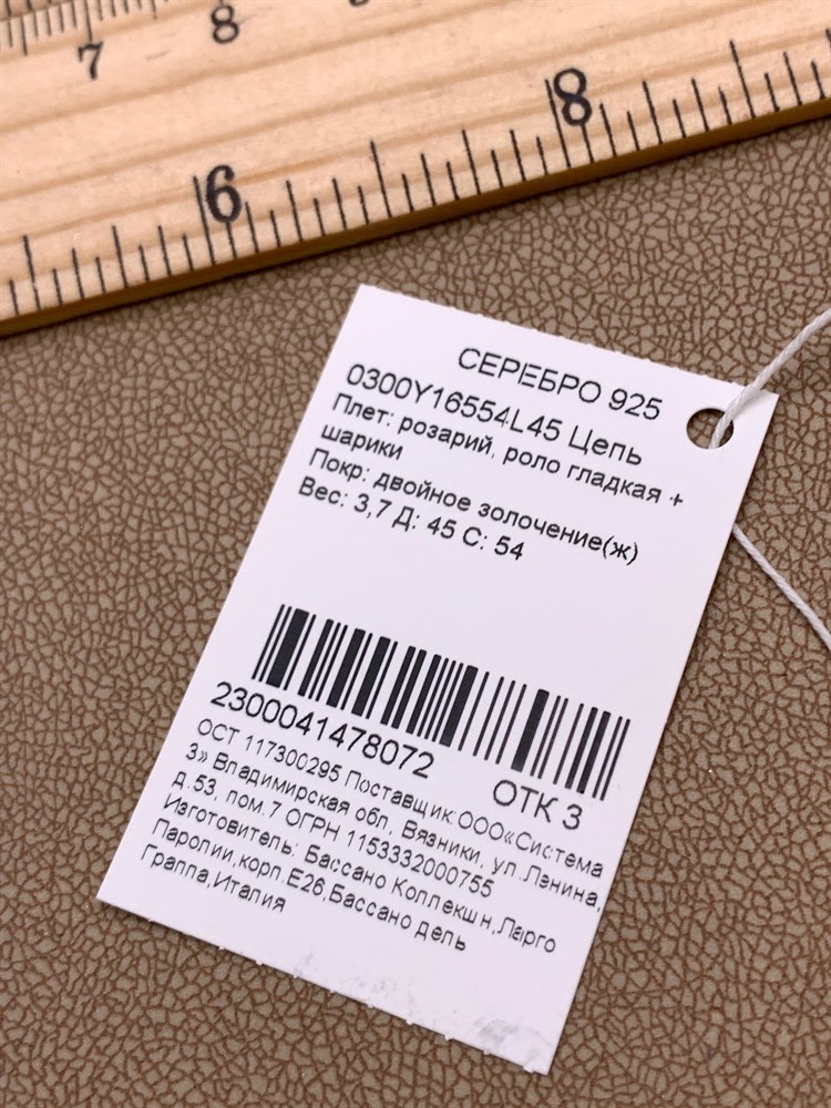 *Цепь р.45 Розарий с подвеской Роло гладкая шарики арт. 0300Y16554L45-072, (Вес 3,7 г)
