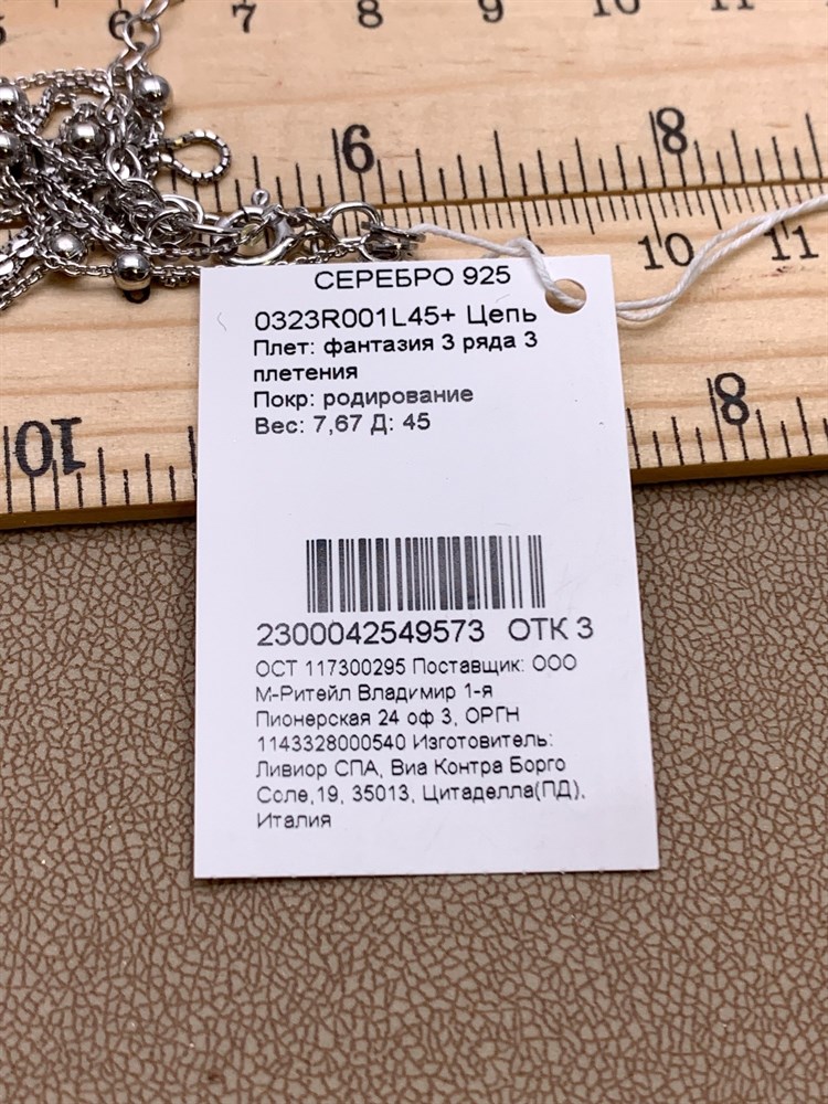 *Цепь р.45 Фантазия 3 ряда Коробочка Якорь с шариками Якорь плоская арт. 0323R001L45+573, (Вес 7,67 г)