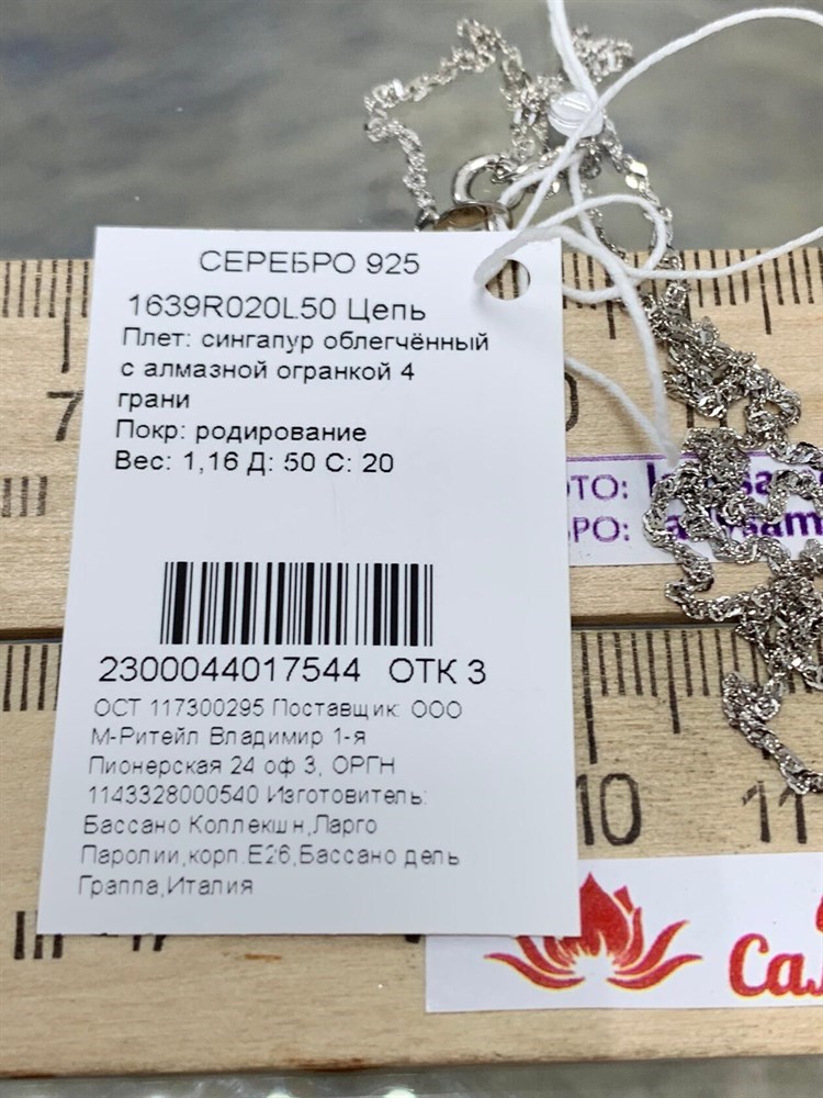 *Цепь р.45 д.020 Сингапур арт. 1639R020L45-161 Вес 1,07 г