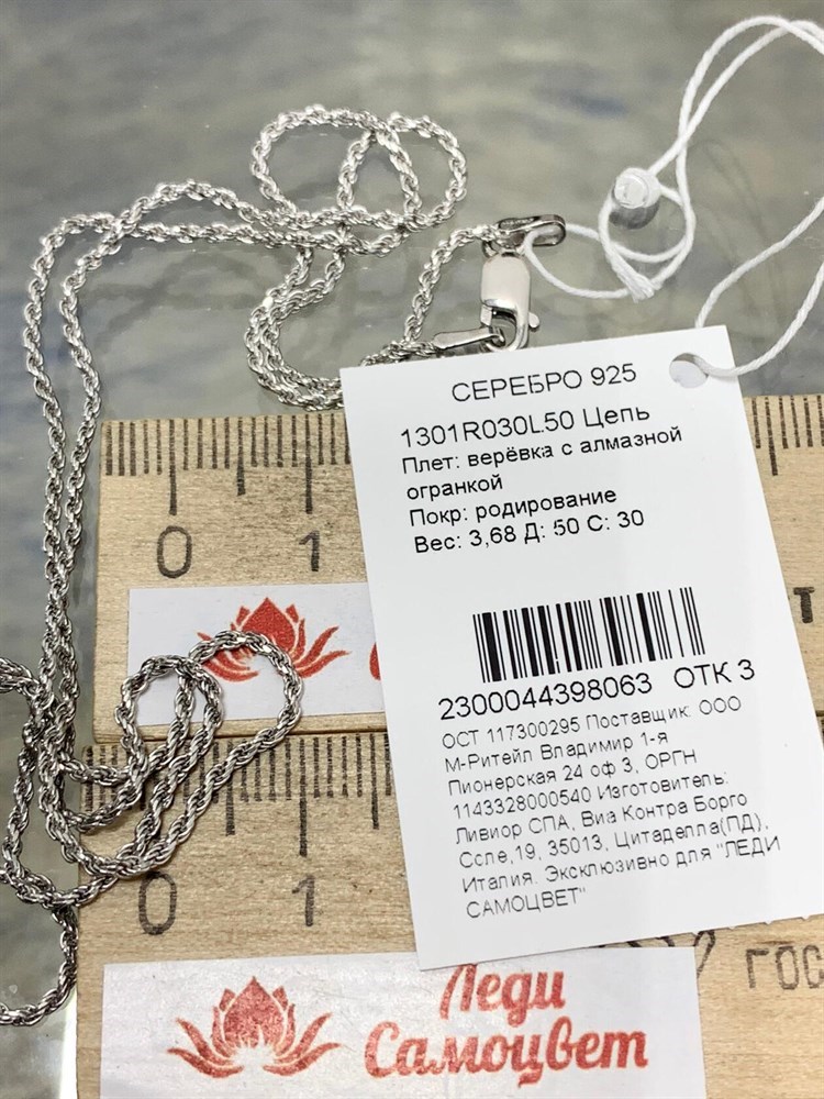 *Цепь р.50 Верёвка с алмазной огранкой арт. 1301R030L50-063 Вес 3,6 г
