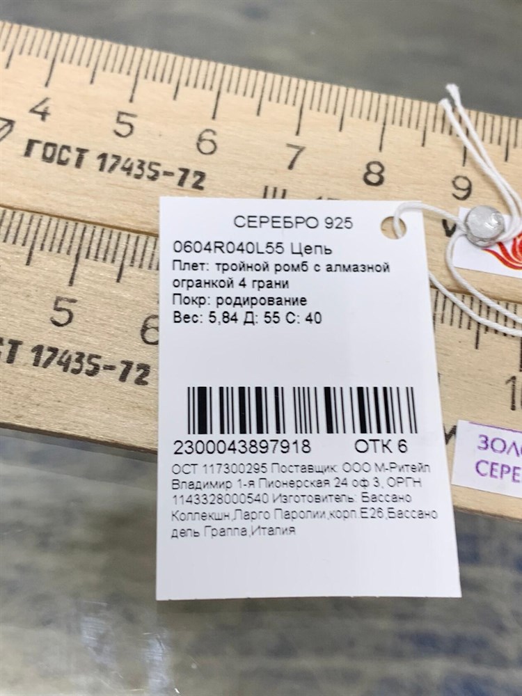 *Цепь р.55 Тройной ромб арт. 0604R040L55-918 (Вес 5,84 г)