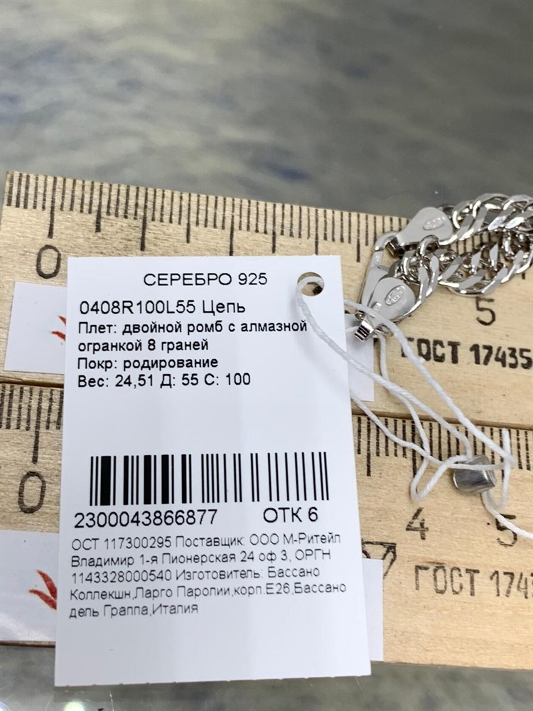 *Цепь р.55 Двойной ромб арт. 0408R100L55-877, (Вес 24,51 г)
