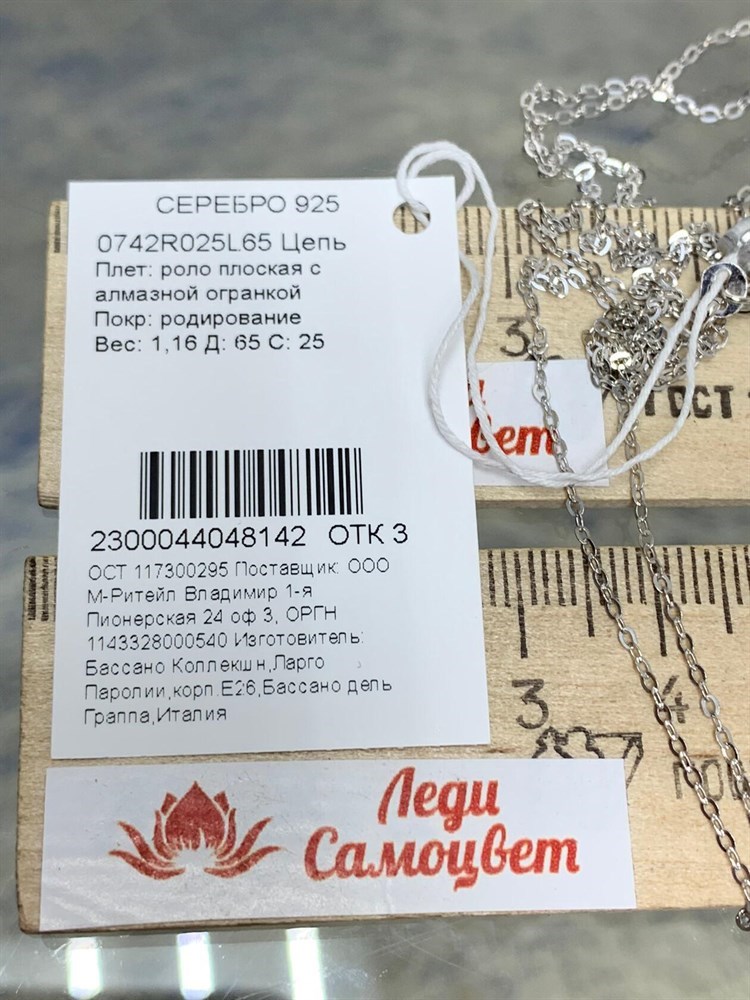 *Цепь р.65 Роло Плоская арт. 0742R025L65-142 Вес 1,16 г
